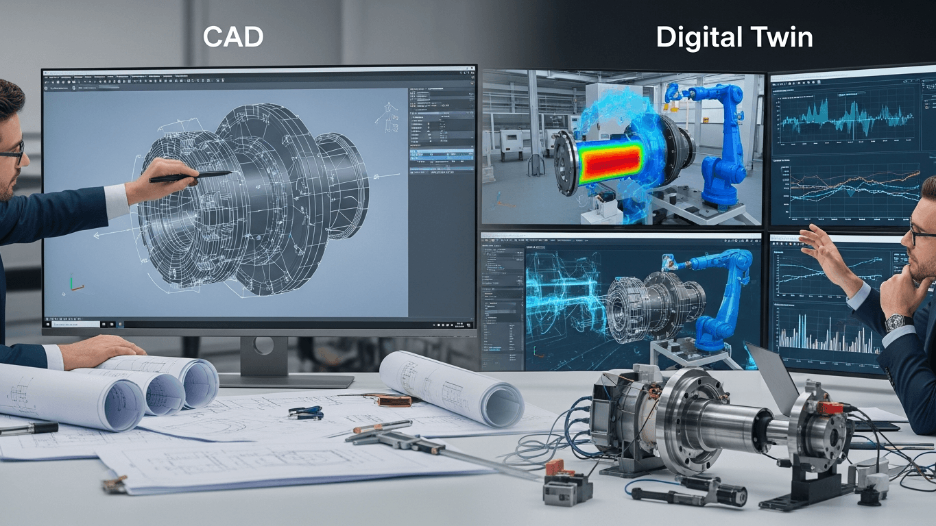 CAD freezes design intent; a decision-grade twin tests how that intent behaves under load before spend and floor time lock in