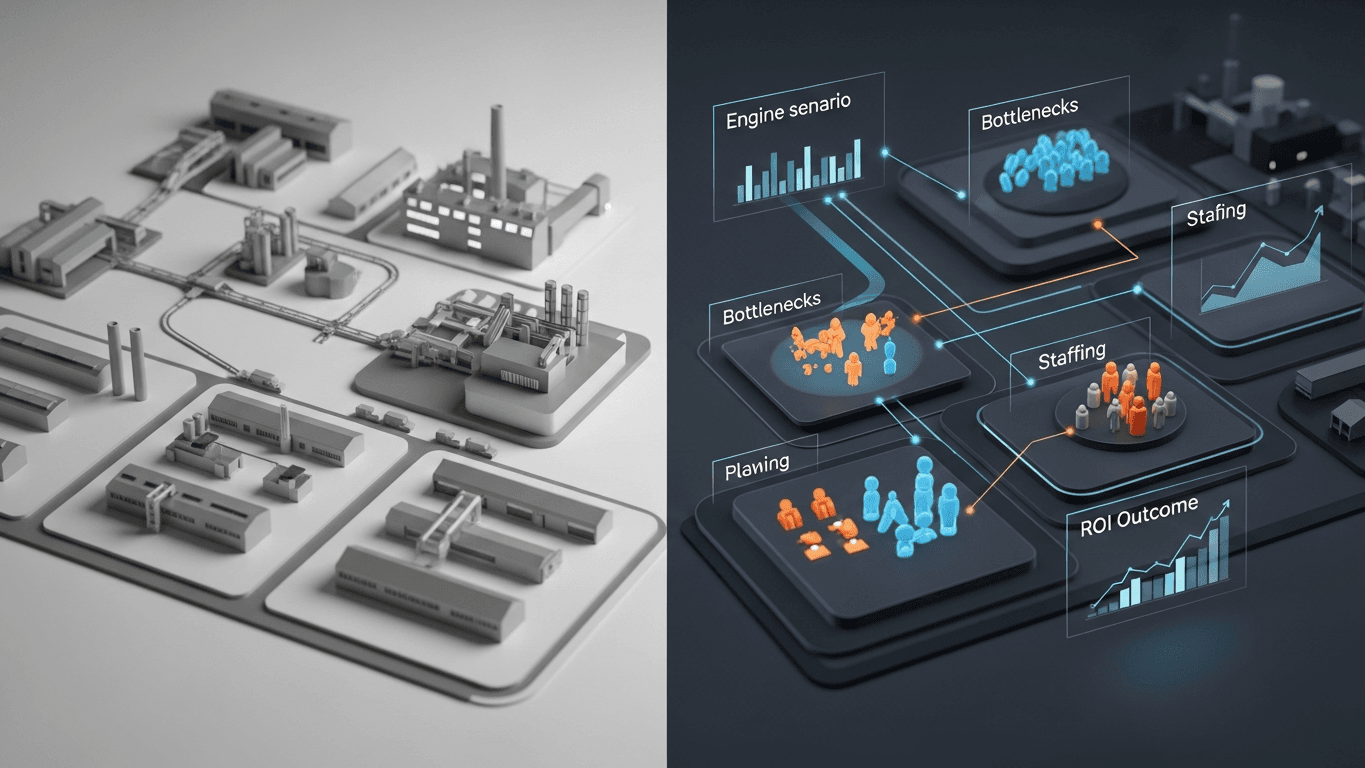 Visualization answers a comfort question: what does the space look like? A decision engine answers an accountability question: what breaks first when demand shifts, a resource slows, or buffer policy changes? That second question is where rework, delay, and weak ROI usually begin. The twin belongs in the same conversation as approval criteria—not only in engineering reviews where geometry is already settled.