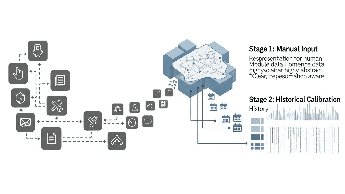 The risk of a manual start is rarely “manual data.” It is unowned assumptions that never receive ranges or review. Strong early practice names owners for each assumption class, uses min, expected, and max where variation drives queues, and includes demand cases with unfavorable mix—not only volume. That keeps early twins inside approval conversations instead of pilot silos.